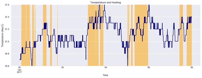 Note that the device has to keep the controlled temperature within the defined comfort range. In order to do that, it will try to pre-heat in expectation of upcoming high-carbon periods.