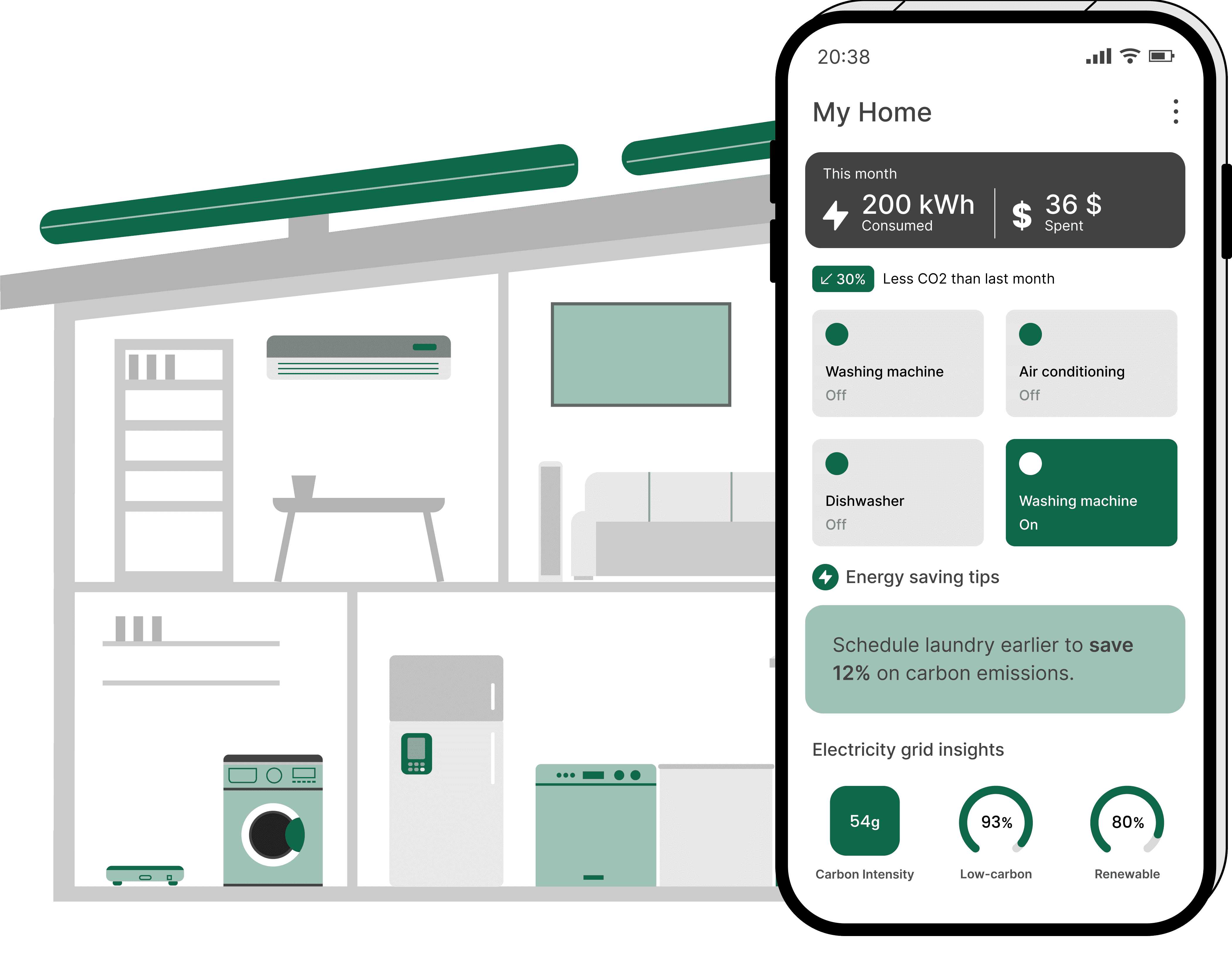 The emissions reduction potential is maximized through seamless automatic scheduling of electricity consumption. Empowering the user to shift the usage of air-conditioning, heating, washing machines, dryers, dishwashers, and more appliances can save a significant amount of household emissions without noticeably impacting daily life. Samsung SmartThings makes this possible for millions of users worldwide with the Optimal Charging and AI Energy Mode developed on top of Electricity Maps data.